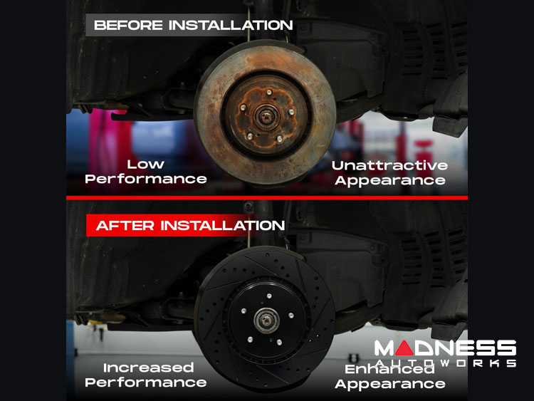 The Smart Fortwo Brake Kit is engineered to the highest standards, using state-of-the-art technology to ensure durability and effectiveness. This brake kit is meticulously crafted for a direct fit, requiring no modifications for installation, ensuring a straightforward update to your vehicle's braking system. The inclusion of black zinc plating offers an added layer of protection against corrosion, maintaining the rotors' condition and appearance over time. The strategically drilled and slotted design effectively dissipates heat, minimizing brake fade during extensive use and ensuring exceptional performance under various driving conditions.