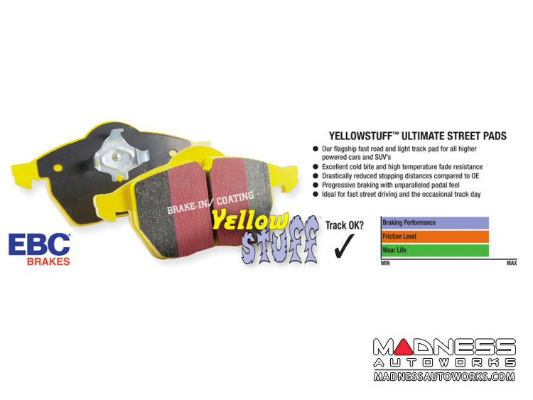 These Brake Pads are made for high-performance use on the track or street. Yellow Stuff pads are designed to manage the heat that comes with high-speed use, making them a perfect fit for racers everywhere.