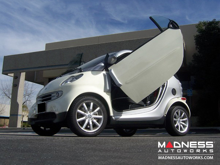 The 450 model smart fortwo Vertical Door Kit is your key to transforming your 450 model smart with a distinct style. This exclusive direct bolt-on kit offers a bold upgrade, designed specifically to replace the stock hinges, making your vehicle stand out on the road.