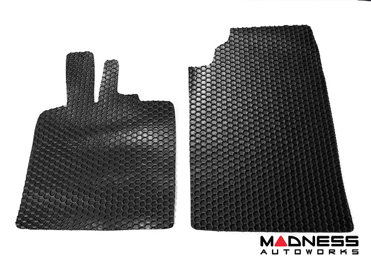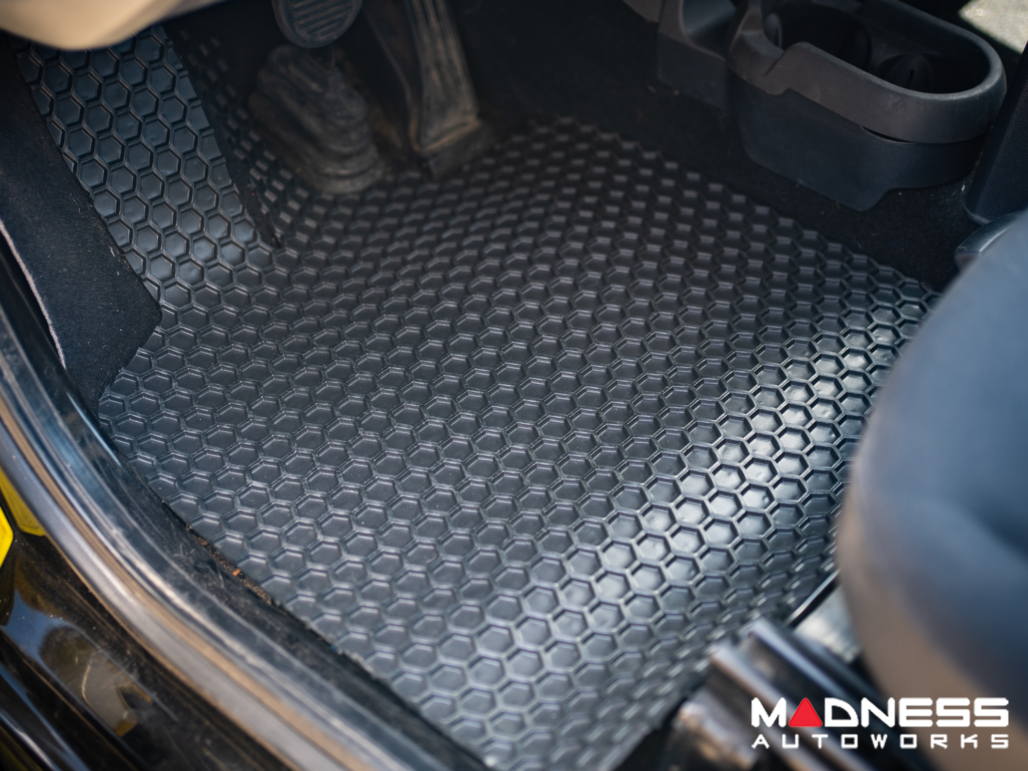 Molded from a space-age rubber composite, these Floor Mats are both flexible and durable. This unique material means HEXOMATS car mats won't fade, crack or otherwise deteriorate. They're custom-contoured to the shape of your floor pan for maximum coverage in a low-profile design-no clumsy tall outer rim.