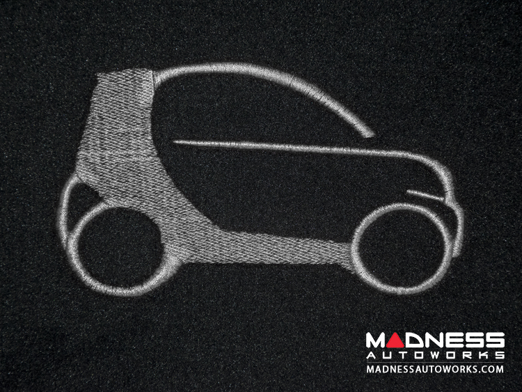 smart fortwo Custom Floor Mats - 453 model - LUXUS - Black Binding w/ smart silhouette